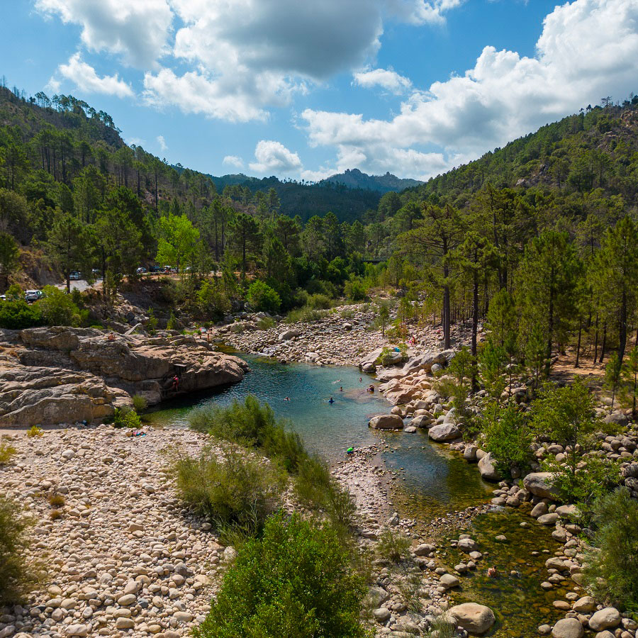 La Corse, île de beauté, est traversée par de nombreuses rivières qui sculptent ses paysages montagneux et sauvages. Parmi elles, l’Onu, la Cava, la Solenza et le Pulischeddu offrent des cours d’eau aux caractères uniques. L’Onu serpente à travers des vallées escarpées, alimentant des bassins naturels d’une grande pureté. La Cava, avec ses eaux limpides, est prisée pour ses gorges spectaculaires et ses piscines naturelles. La Solenza, plus discrète, traverse des forêts denses, créant un cadre paisible et verdoyant. Enfin, le Pulischeddu, au débit capricieux, coule entre roches et maquis, révélant un visage typiquement corse.